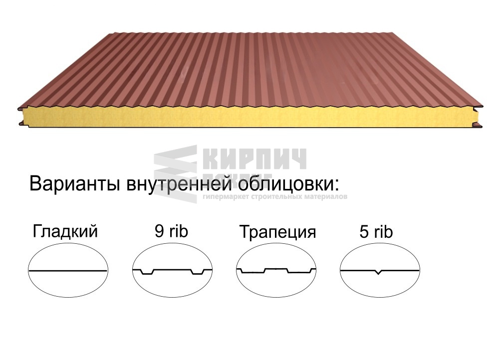 В интернет-магазине "Кирпич Вокруг" Вы можете купить Стеновая трёхслойная сэндвич-панель микрориф 30 100мм 1000мм с видимым креплением минеральная вата Полиэстер Доборник в Брянске, а наши специалисты готовы вам помочь с выбором по адресу: , или оказать консультацию по телефону: .